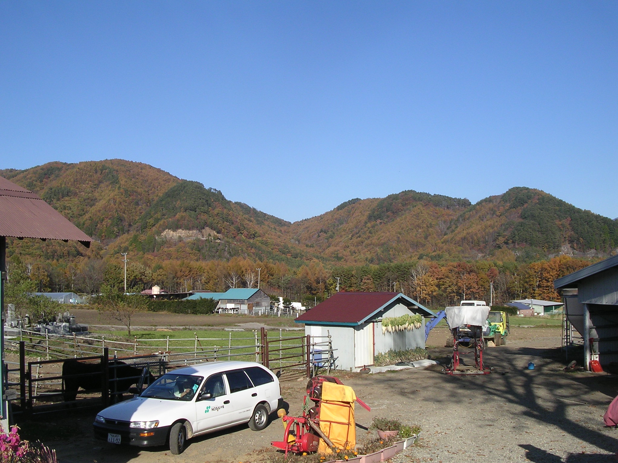 お店の近くの牧場 牛が一杯います この日は獣医さんがきていました