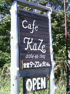 14:00頃 Cafe Kazeを出る。バス停はこの看板のすぐ横にあったりします。